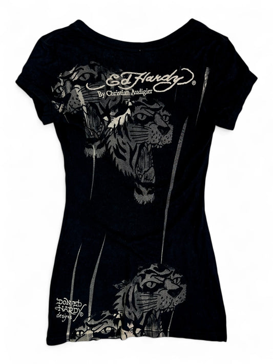 Vintage Y2K Ed Hardy Tiger & Rose Black Graphic T-Shirt