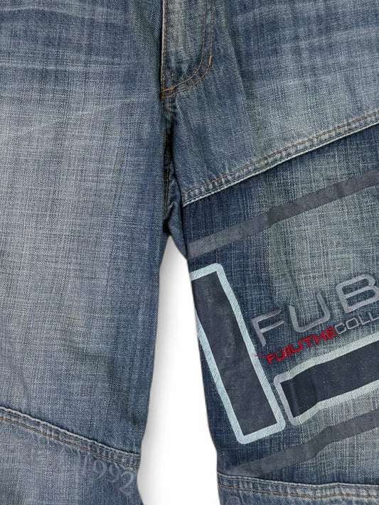 Vintage 00s Y2K FUBU Platinum logo denim capri shorts